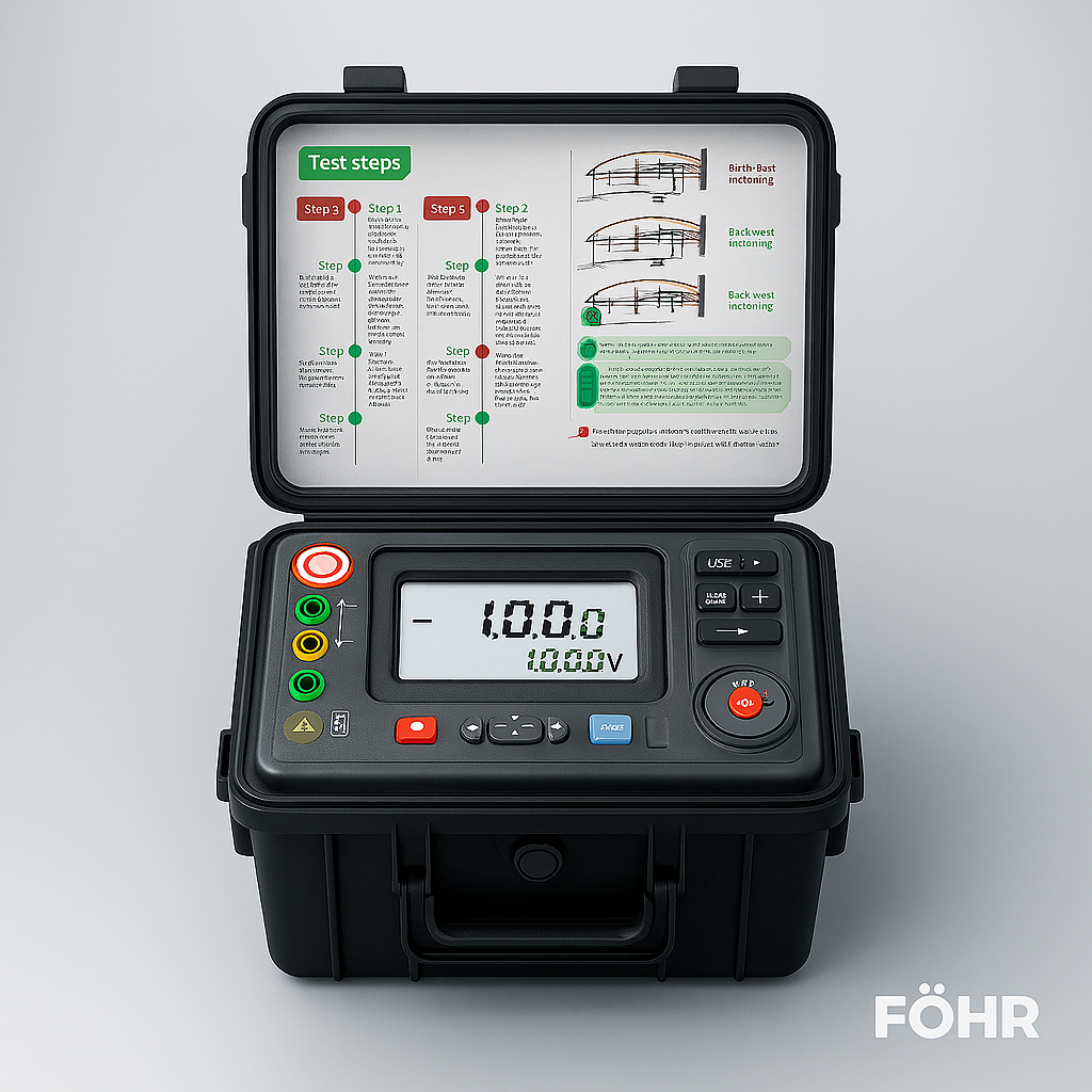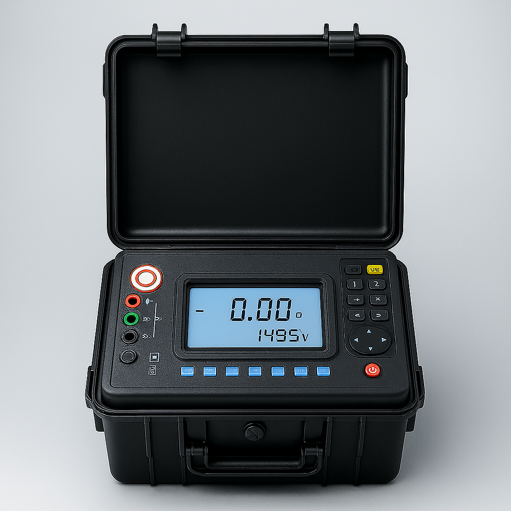 High-voltage instrument designed for the precise measurement of insulation resistance in medium and high voltage electrical systems. Operates with test voltages from 500 V to 15 kV
